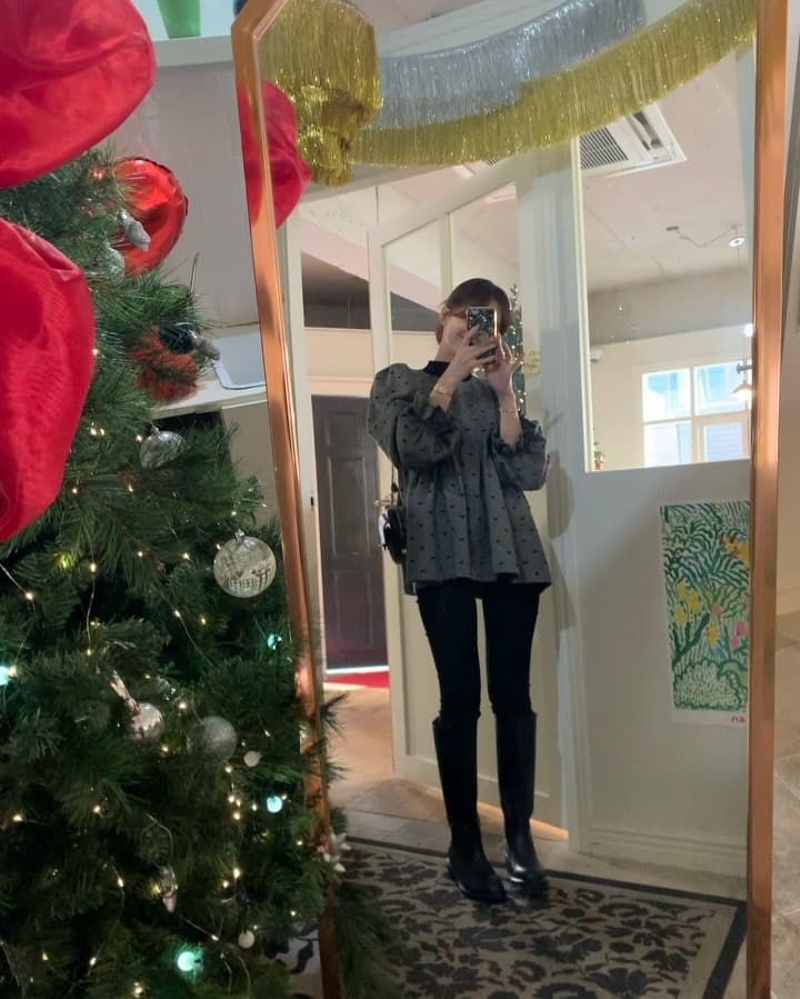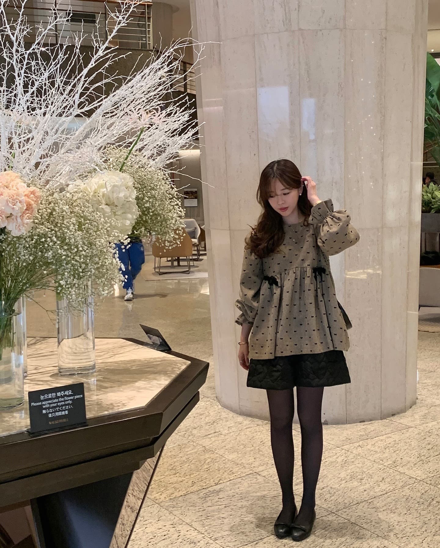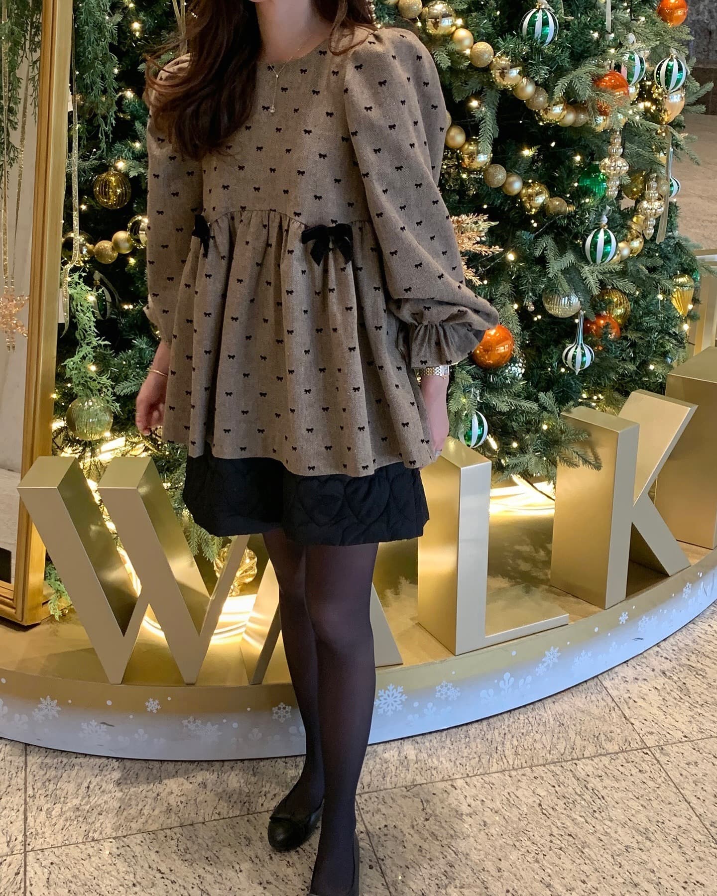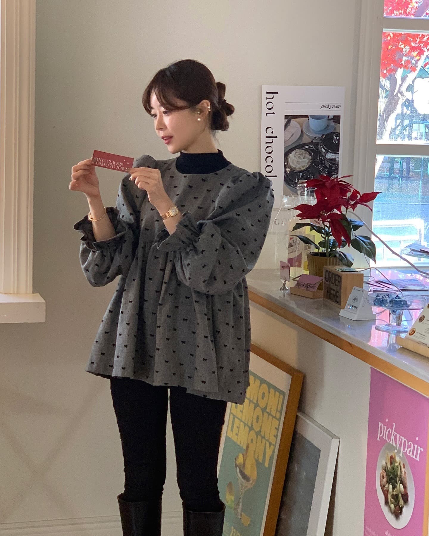 可愛いリボン柄が散りばめられたフレンチガーリースタイルのブラウス。
