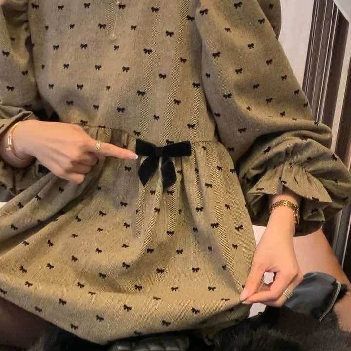 パフスリーブとウエストリボンが女性らしさを演出し、