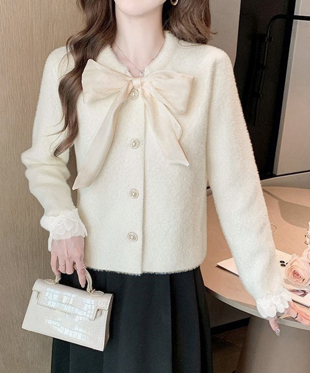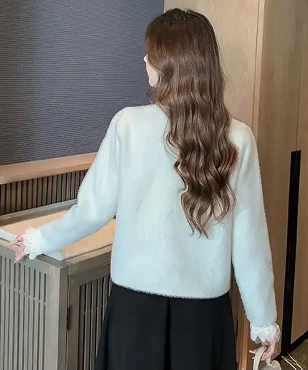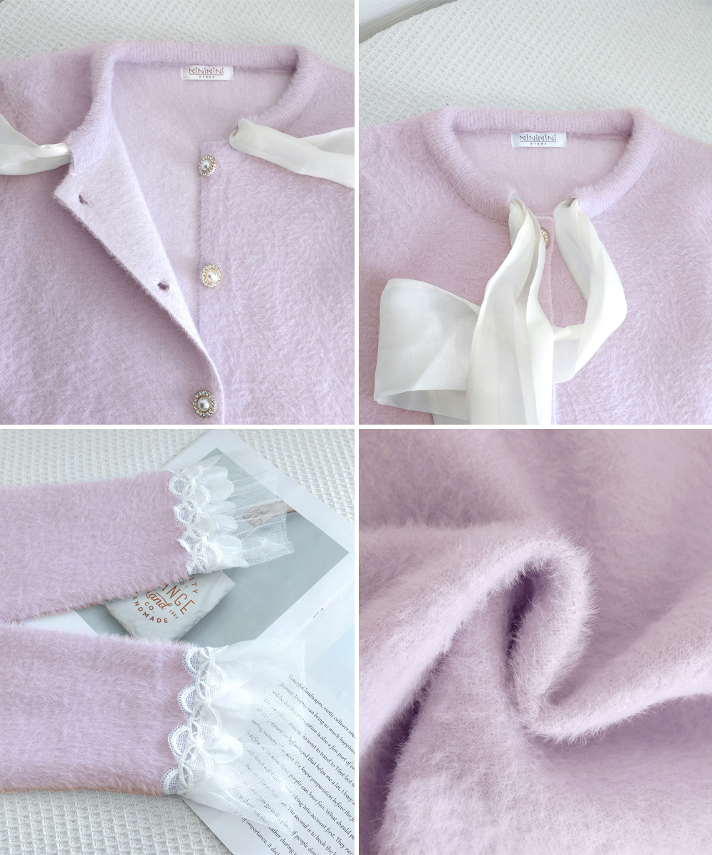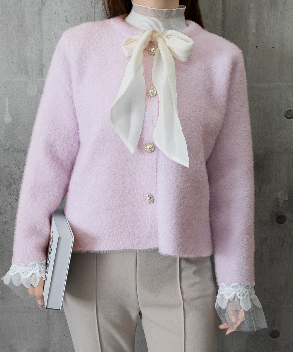 シャギー調素材で柔らかく、袖口のレースが女性らしさをプラス。