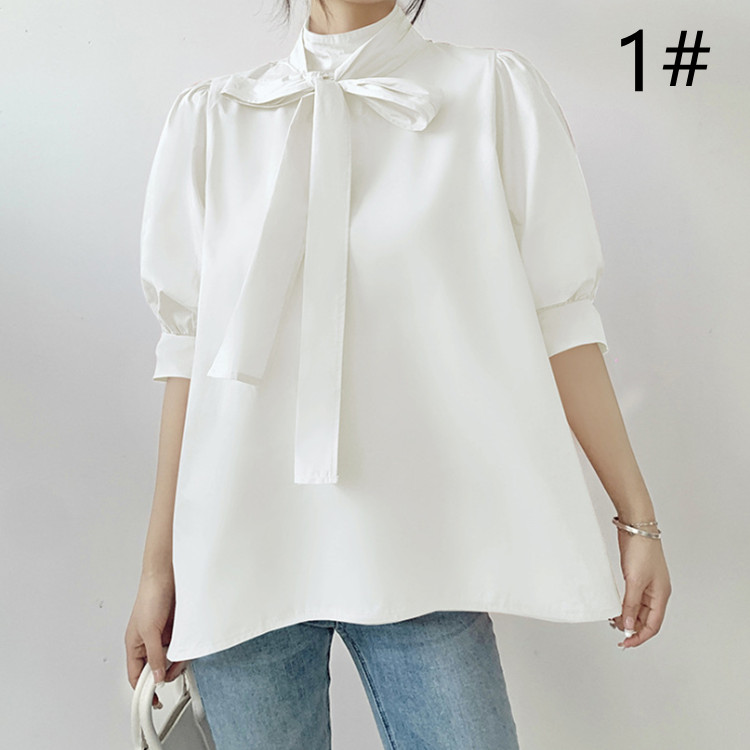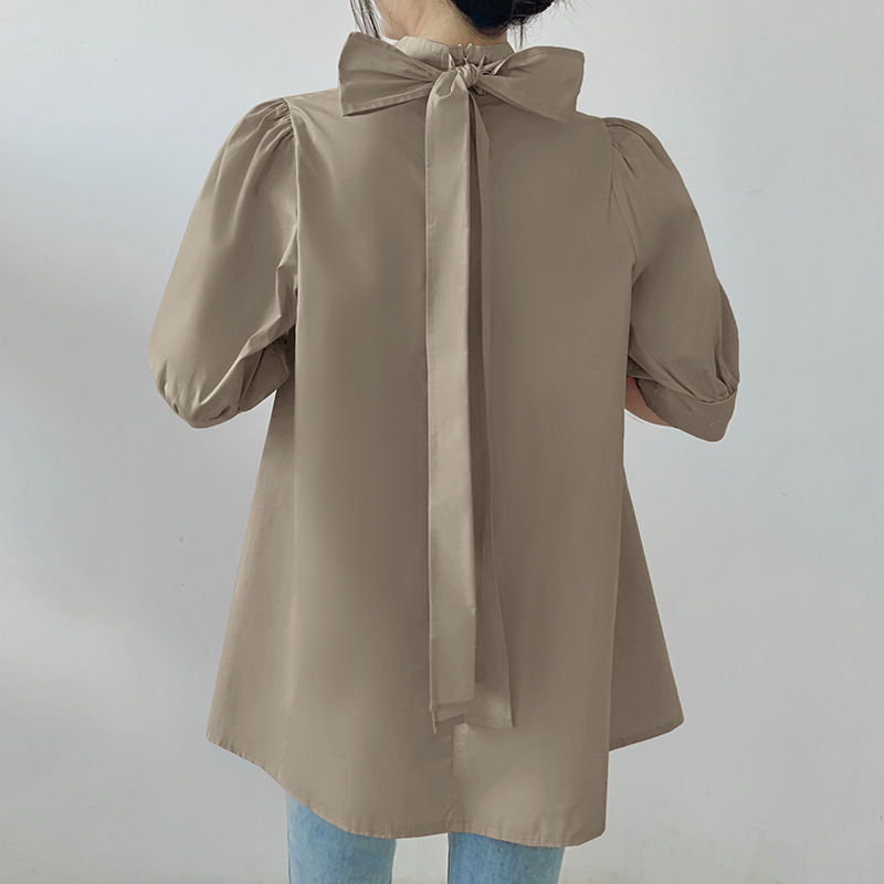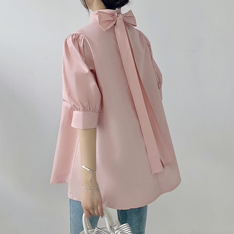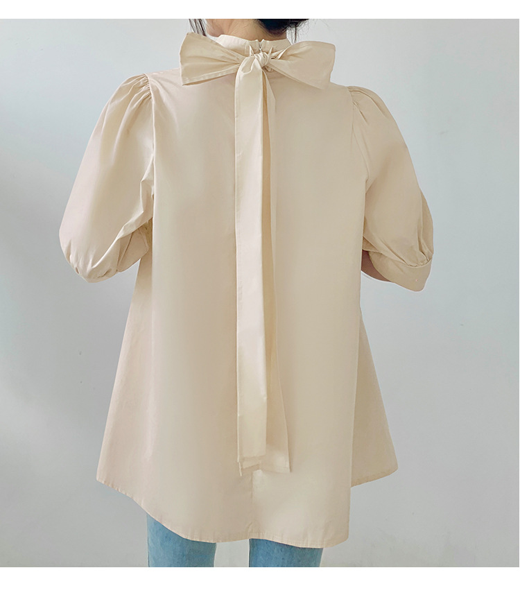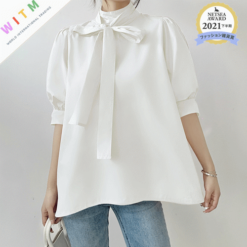 首元の大きなリボンが可愛らしさを演出し、ふんわり袖で女性らしさをアップ。