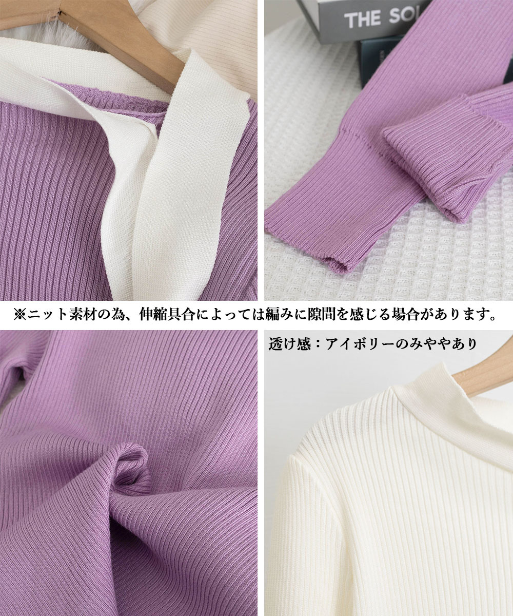 素材:ポリエステル75%+アクリル25% カラー:ブラック/アイボリー/キャメル/パープル サイズ:ワンサイズ 着丈:約49cm 肩幅:約34cm 袖丈:約58cm ゆき:約75cm 身幅:約33cm 胸囲:約66-130cm 裏地:なし 伸縮性:あり 透け感:アイボリーのみややあり ※ニット素材の為、伸縮具合によっては編みに隙間を感じる場合があります。 ※すべて平置きサイズです(採寸方法違いより、多少の誤差がございますので、ご了承ください)。