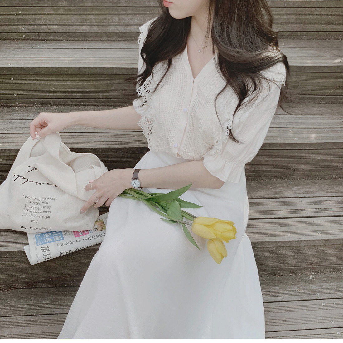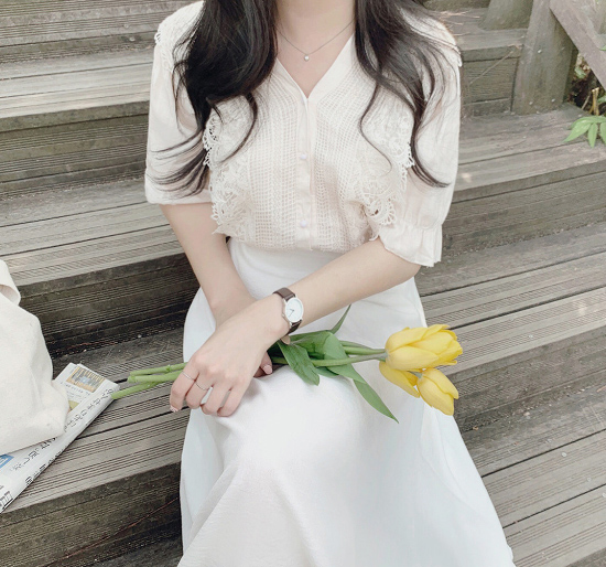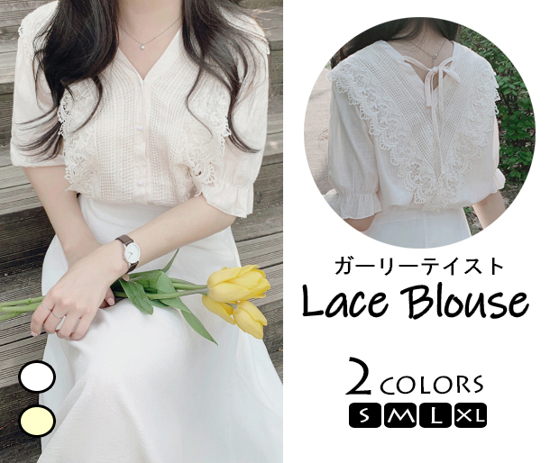 ■コメント ◇ポイント◇ 1.ガーリーテイストのレース飾り 2.ボリュームな袖 3.バックのリボン ◇スタイリング◇ ナチュラルなVネックと前後のレースがとことんガーリーテイストのブラウスです。 いつものボトムに合わせるだけで、大人ガーリーな雰囲気に変わります。 スタンダード丈なので、ジーンズやスカート、ワイドパンツ、オーバーオールにベルトマッチします。 ■サイズ(単位:約cm) [S]着丈59cm、バスト94cm、肩幅32cm、袖丈29cm [M]着丈60cm、バスト98cm、肩幅33cm、袖丈30cm(OK) [L]着丈61cm、バスト102cm、肩幅34cm、袖丈31cm [XL]着丈62cm、バスト106cm、肩幅35cm、袖丈32cm ■カラー 画像に記載 ■伸縮性 なし ■裏地 なし ■生地の厚さ 薄い ■透け感 あり ■素材 綿80%、ポリエステル20%