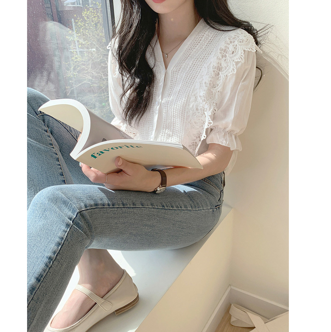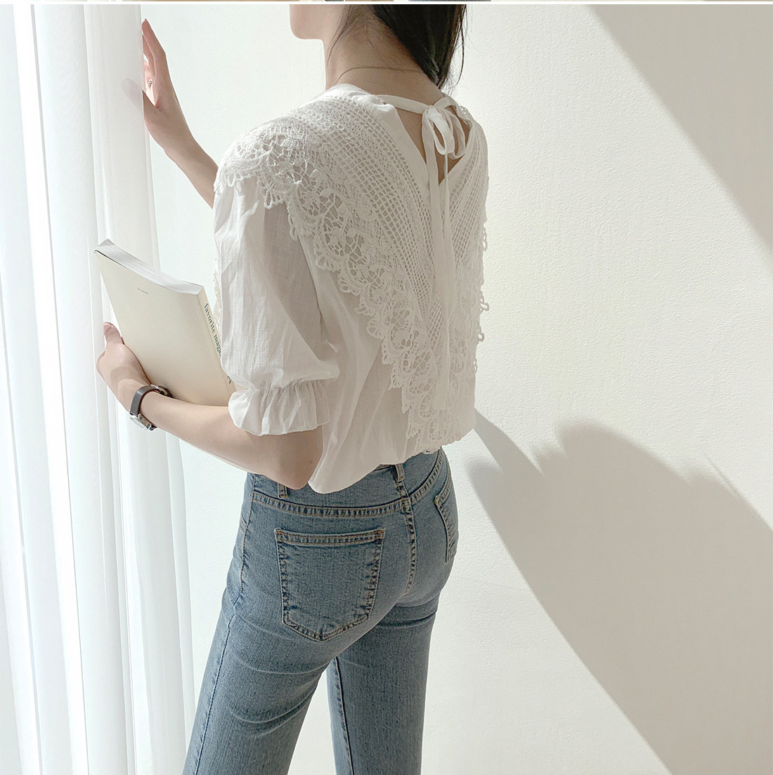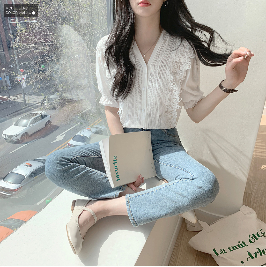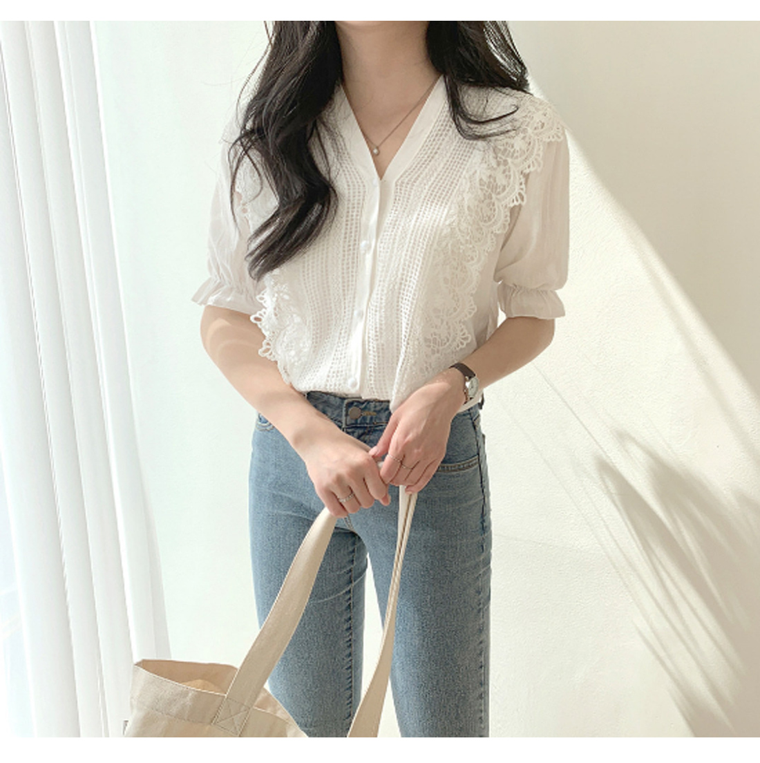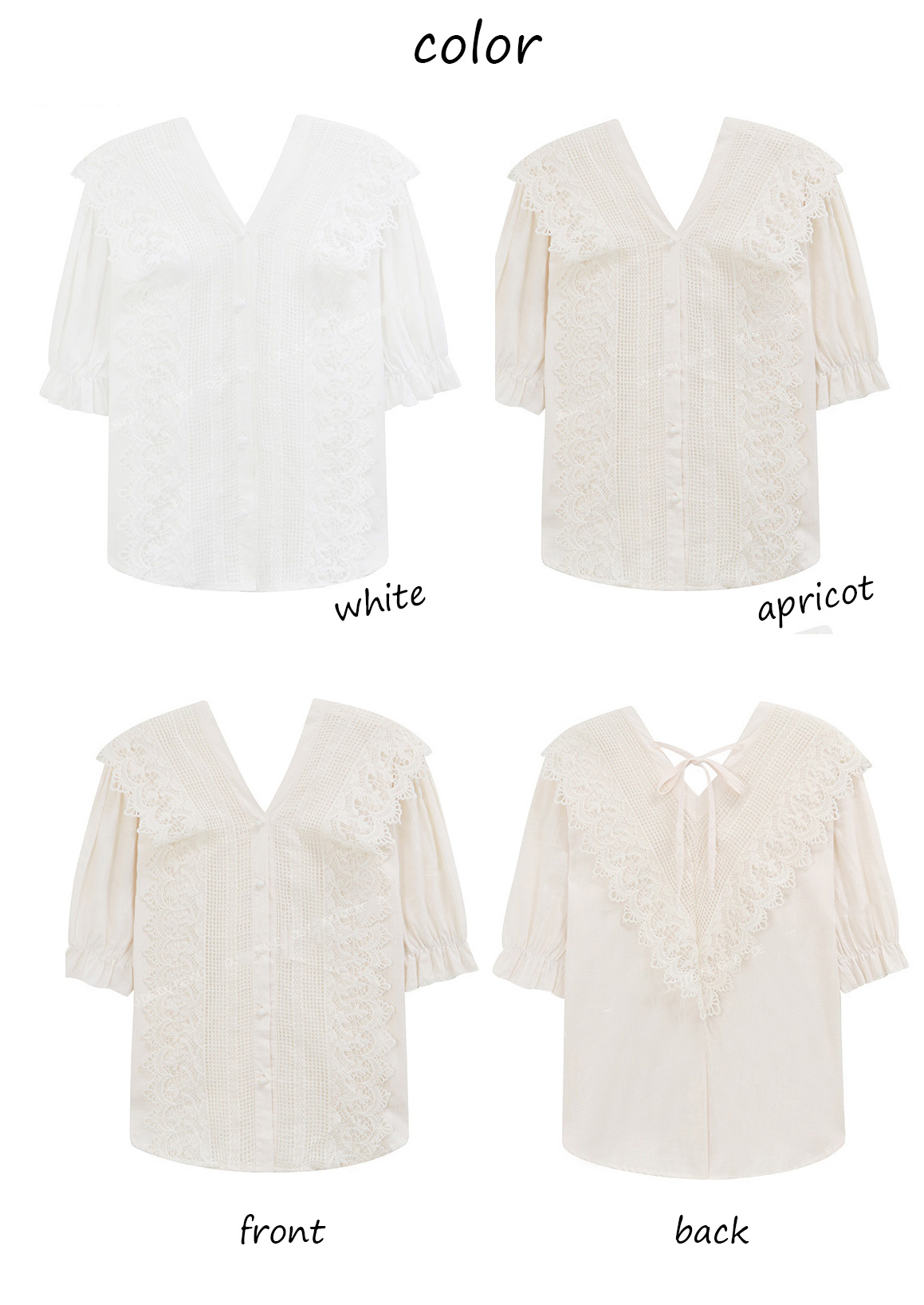 フレンチガーリーな魅力溢れる繊細なレース装飾が美しいブラウスです。