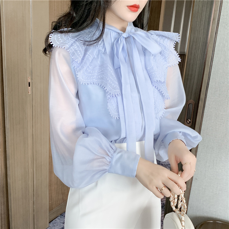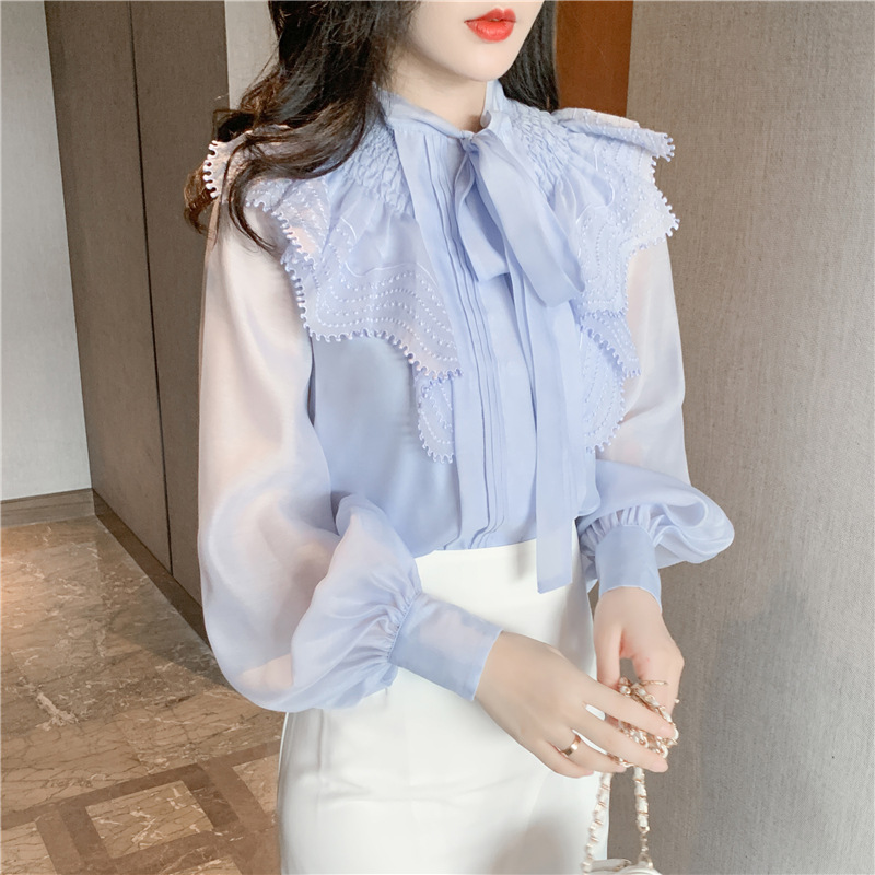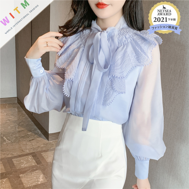 フレンチガーリーな透け感シフォン素材とパフスリーブが、